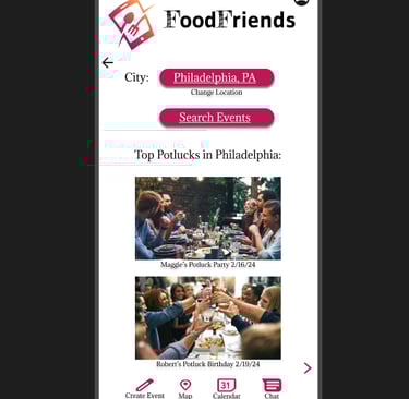 FoodFriends is a mobile app that enables people to make friends and share food in their area by hosting potluck parties. The app has map, chat, and scheduling features to facilitate these meetups.